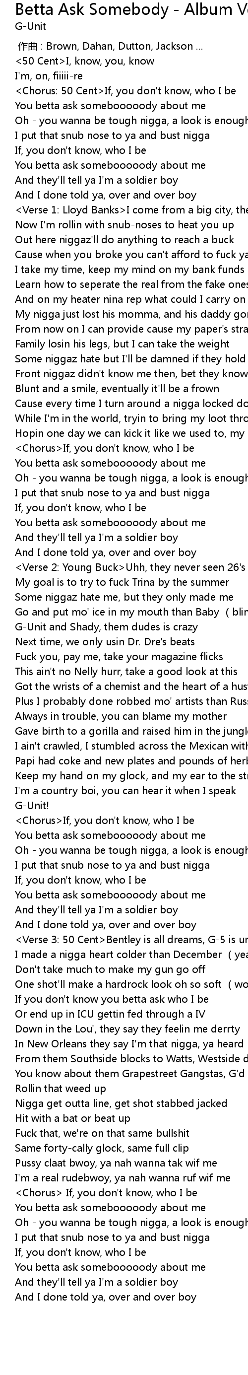 | [00:05.31] | <Chorus: 50 Cent>If, you don't know, who I be |