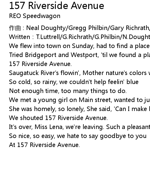 | Song | 157 Riverside Avenue |