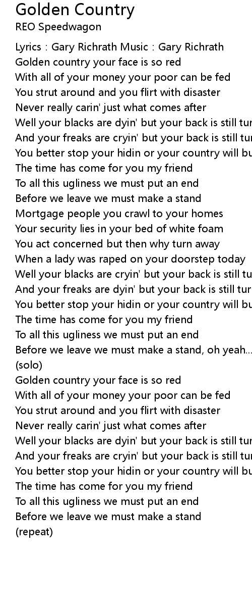 | Golden country your face is so red | |