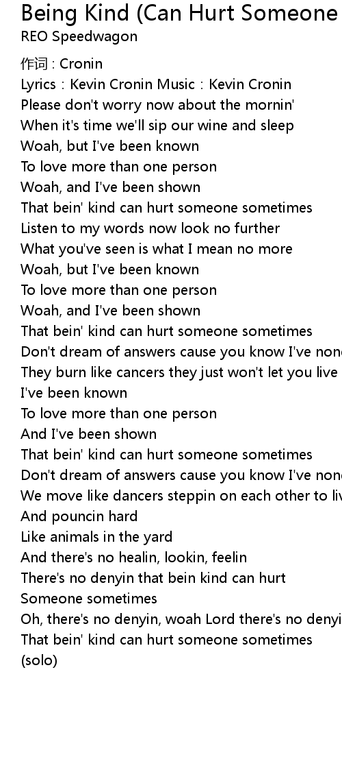 | Song | Being Kind (Can Hurt Someone Sometimes) |