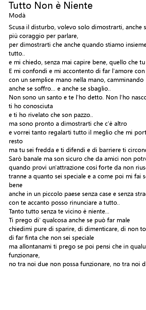 | Song | Tutto Non è Niente |