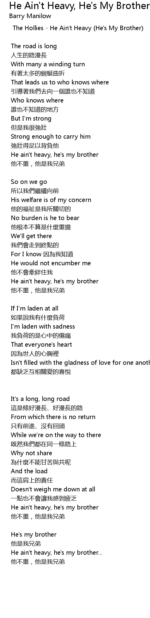 | The Hollies He Ain' t Heavy He' s My Brother | |