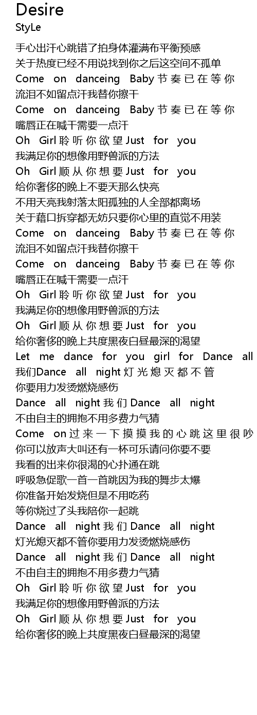 | [00:49.58] | Oh Girl 聆 听 你 欲 望 Just for you |