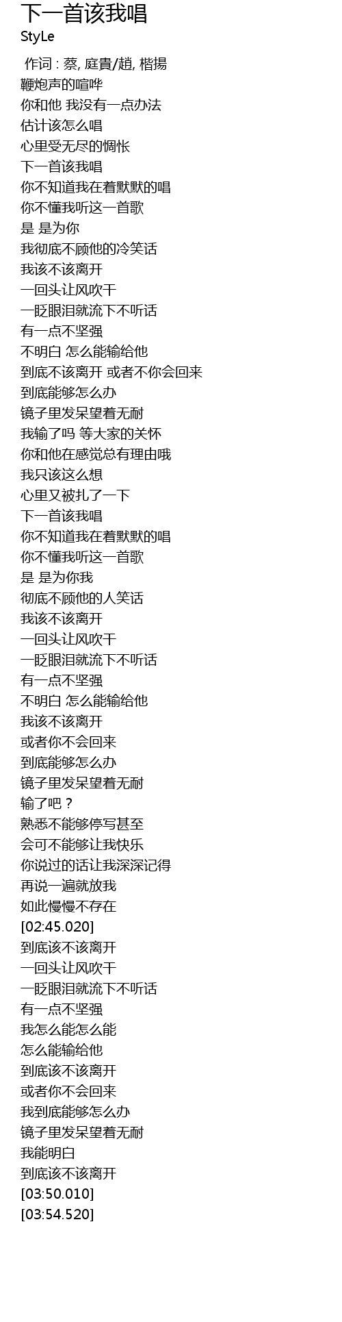 | [00:30.530] | xià yī shǒu gāi wǒ chàng |