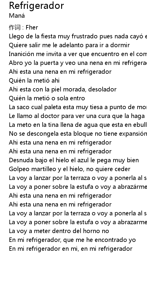 | Abro yo la puerta y veo una nena en mi refrigerador, oh | |