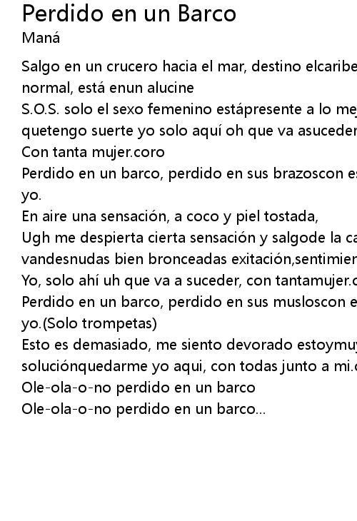 | Perdido en un barco, perdido en sus brazoscon este barco en alta mar, perdido yo. | |