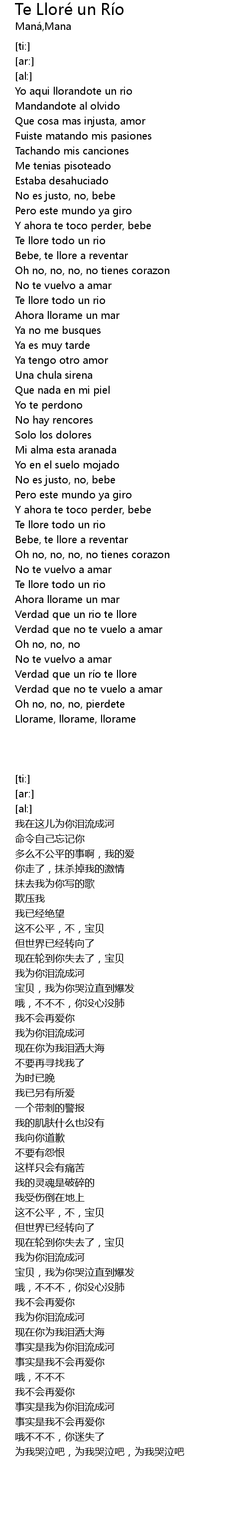 | [00:22.70] | Yo aqui llorandote un rio |