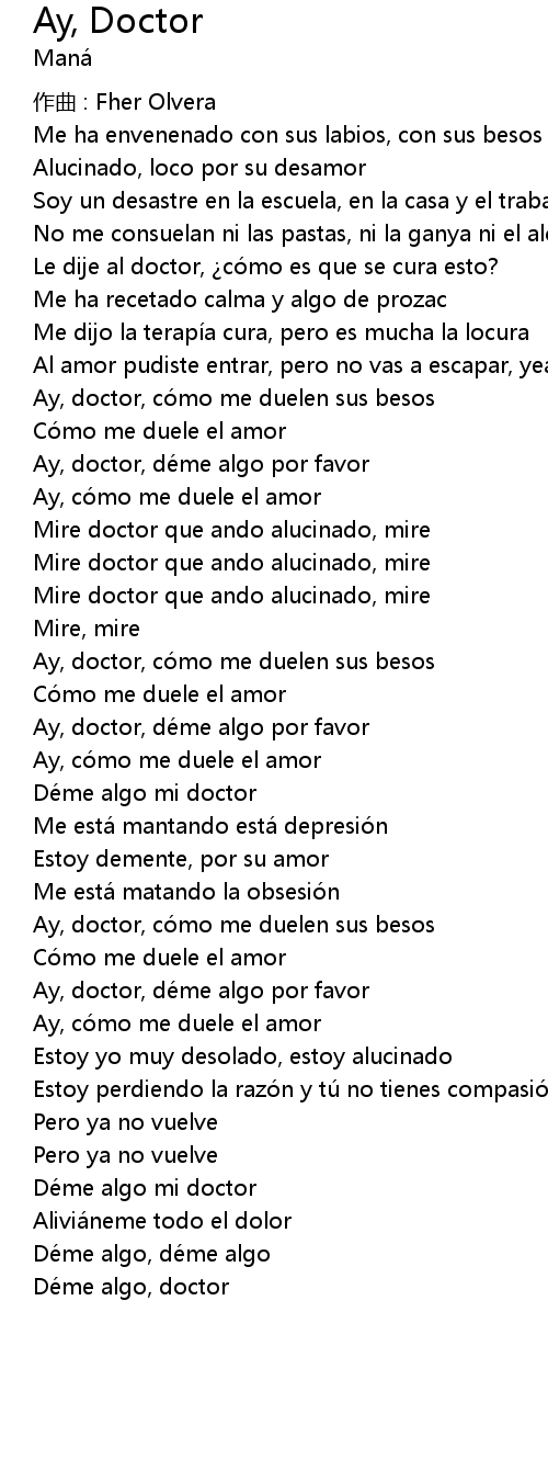 | Ay, doctor, dé me algo por favor | |