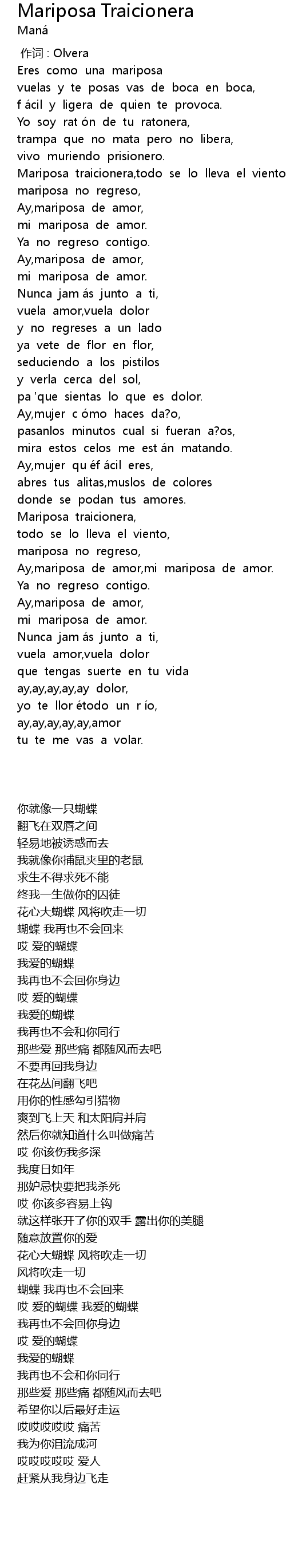 | [03:12.170] | Ay,mariposa de amor,mi mariposa de amor. |