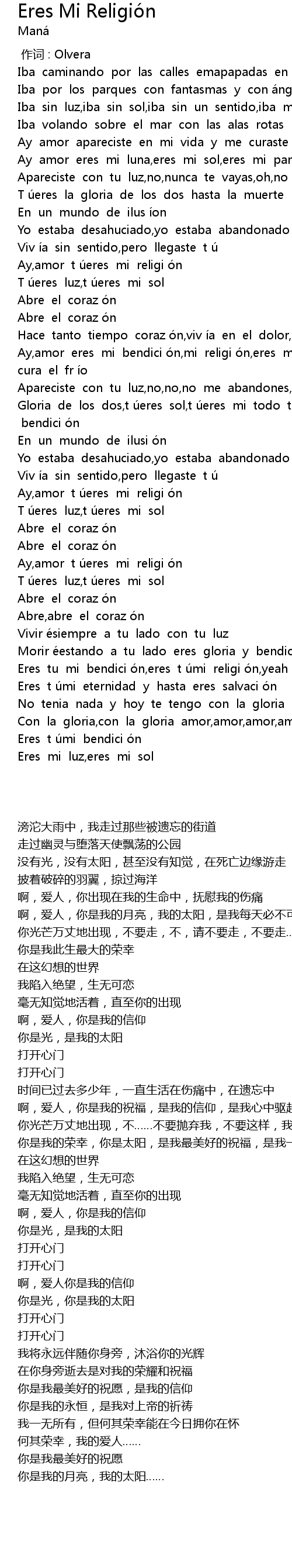 | [03:22.664] | Ay, amor t u eres mi religi o n |