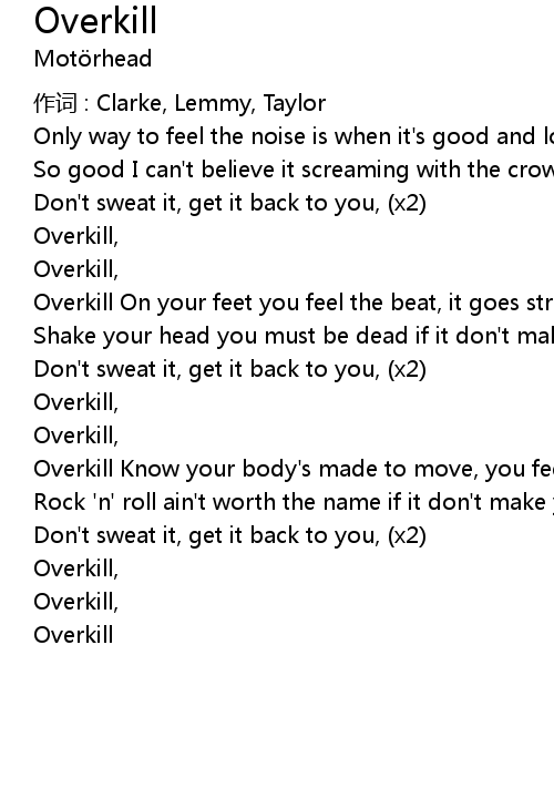 | Overkill Know your body' s made to move, you feel it in your guts | |