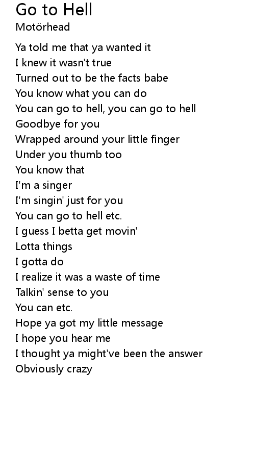 | You can go to hell, you can go to hell | |