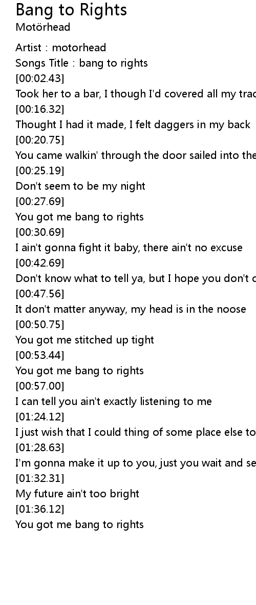 | [00:01.24] | Songs Title: bang to rights |