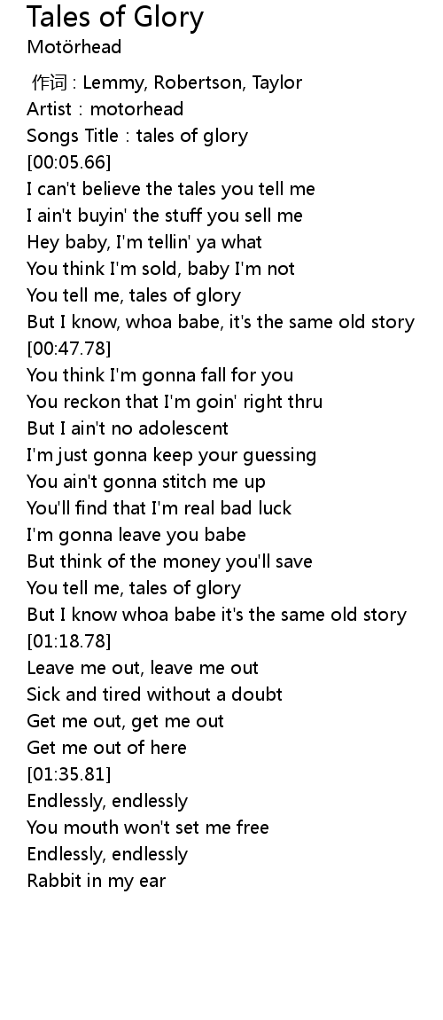 | [00:00.00] | 作词 : Lemmy, Robertson, Taylor |