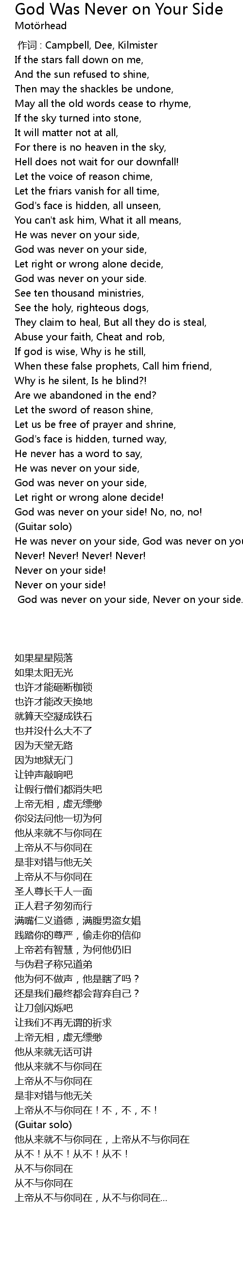 | [02:48.87] | God was never on your side! No, no, no! |