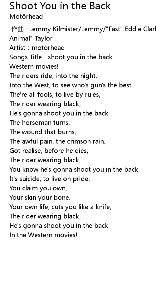 | [00:01.28] | Songs Title: shoot you in the back |