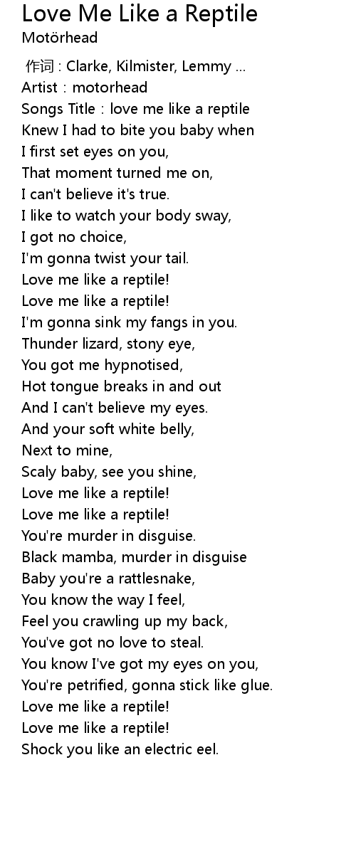 | [00:38.82] | Love me like a reptile! |