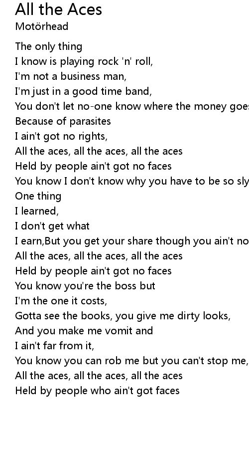 All the aces, all the aces, all the aces |