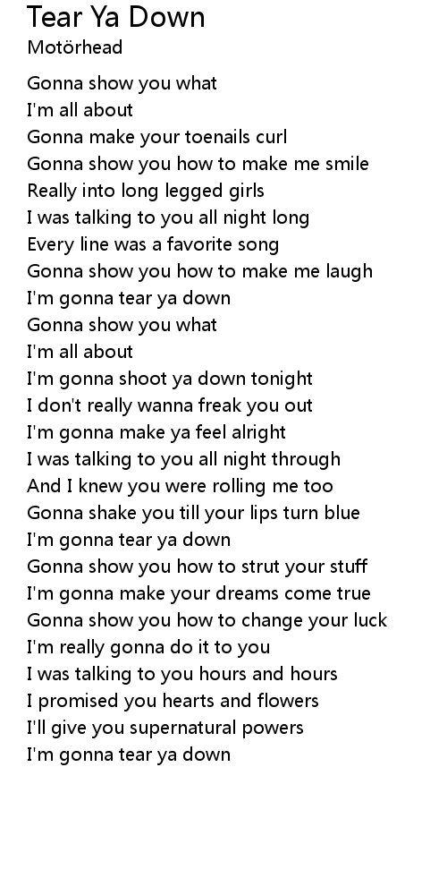 I'm gonna tear ya down |