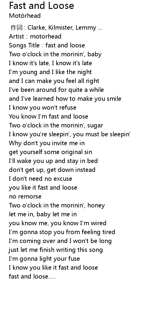 | [00:40.05] | You know I'm fast and loose |