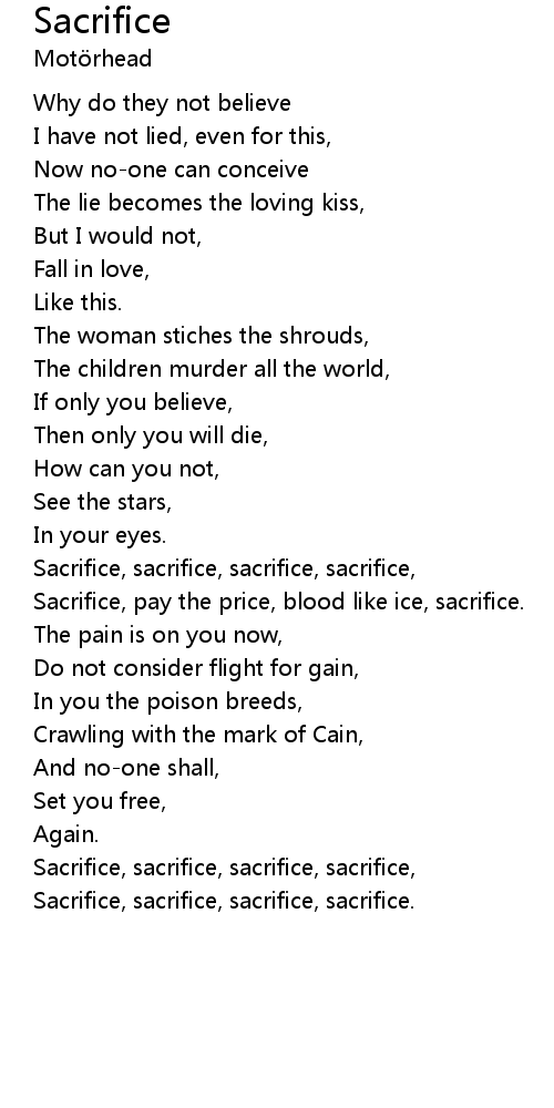 Sacrifice, sacrifice, sacrifice, sacrifice, |