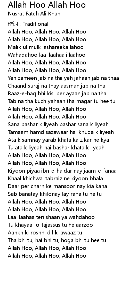 | Allah Hoo, Allah Hoo, Allah Hoo |