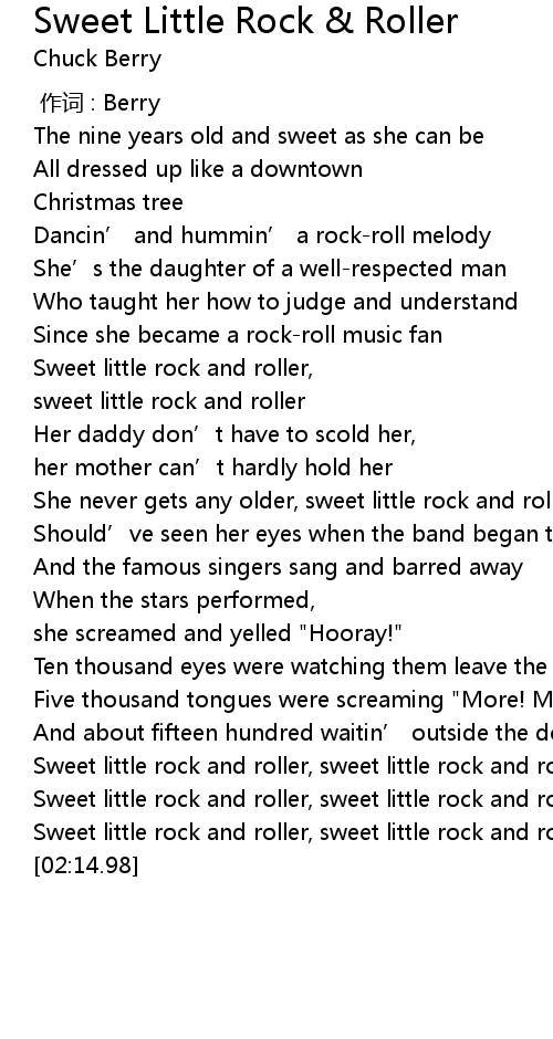 | [02:03.00] | Sweet little rock and roller, sweet little rock and roller |