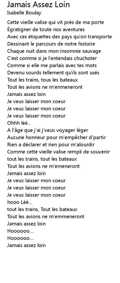 | A l' ge que j' ai j' veux voyager lé ger | |