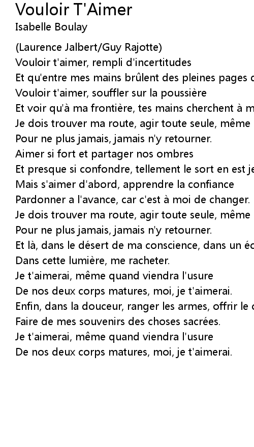 | Vouloir t' aimer, rempli d' incertitudes | |
