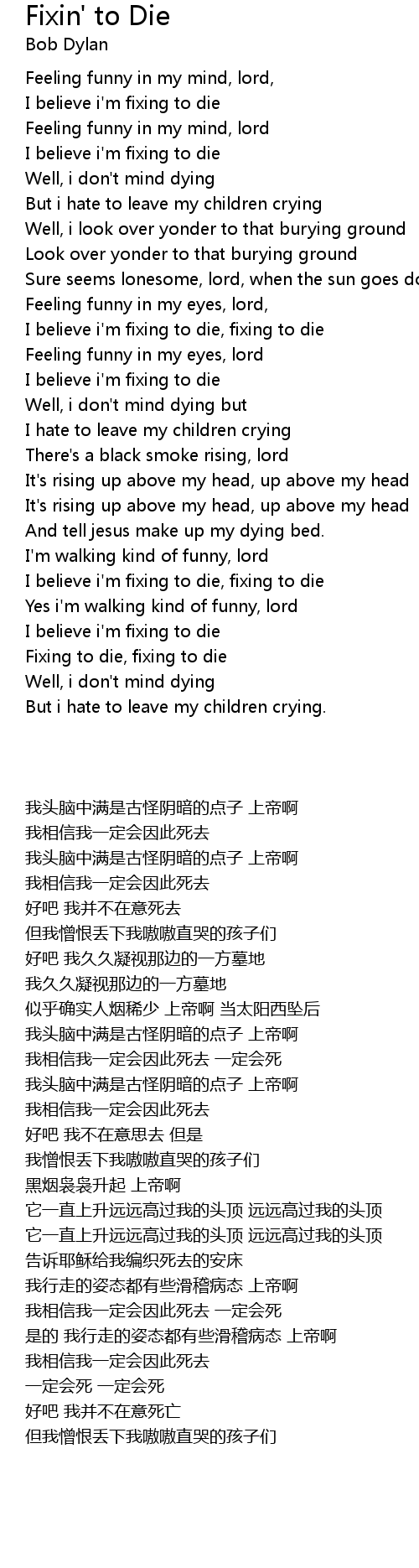 | [00:56.82] | I believe i'm fixing to die, fixing to die |
