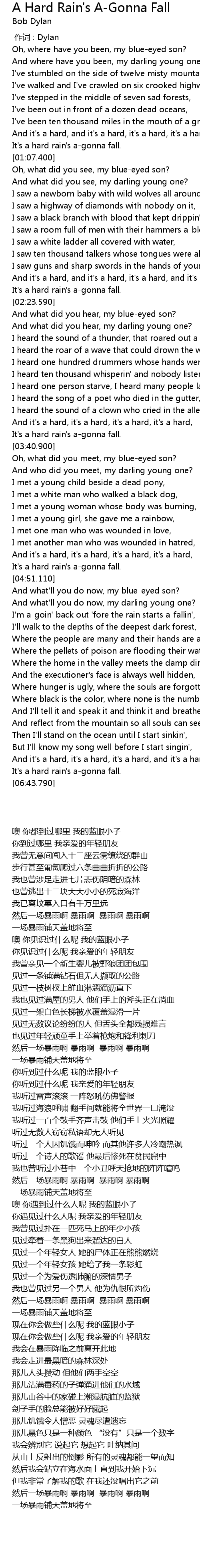 | [02:18.210] | It' s a hard rain' s agonna fall. |