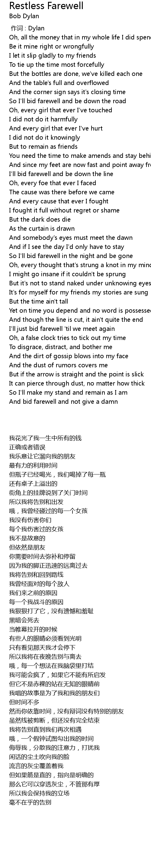 | [00:49.72] | So I' ll bid farewell and be down the road |