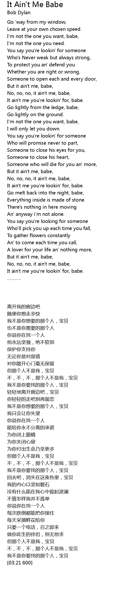 | [00:54.50] | No, no, no, it ain' t me, babe, |