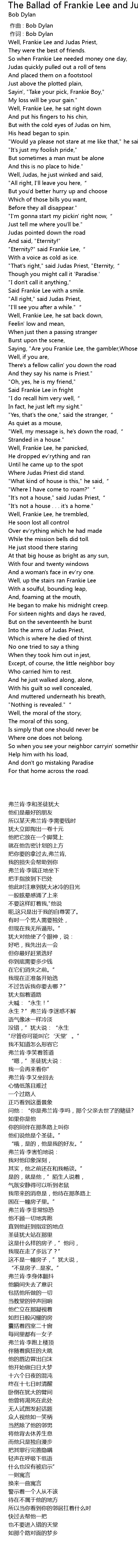 | [00:01.00] | 作词 : Bob Dylan |