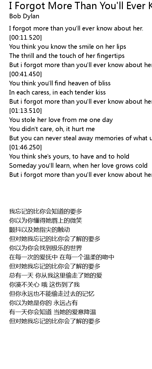 | [00:31.550] | But i forgot more than you' ll ever know about her. |