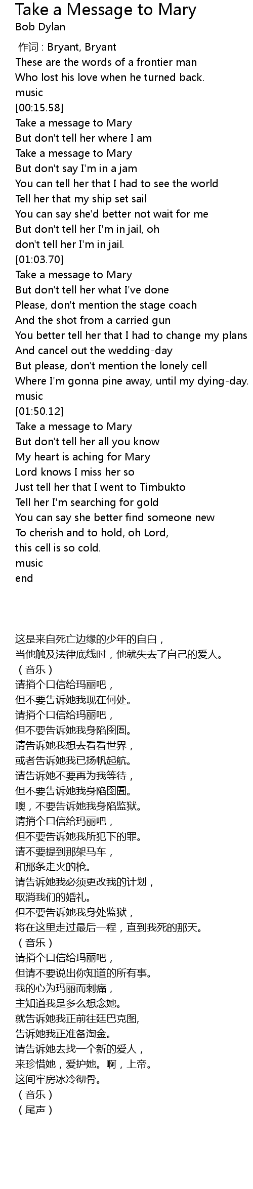 | [00:55.23] | But don't tell her I'm in jail, oh |