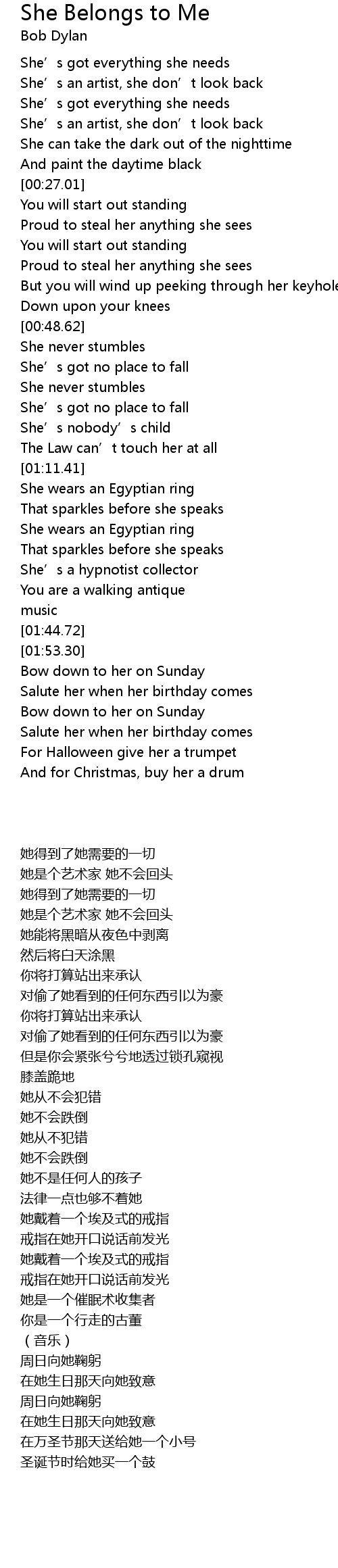 | [01:57.51] | Bow down to her on Sunday |