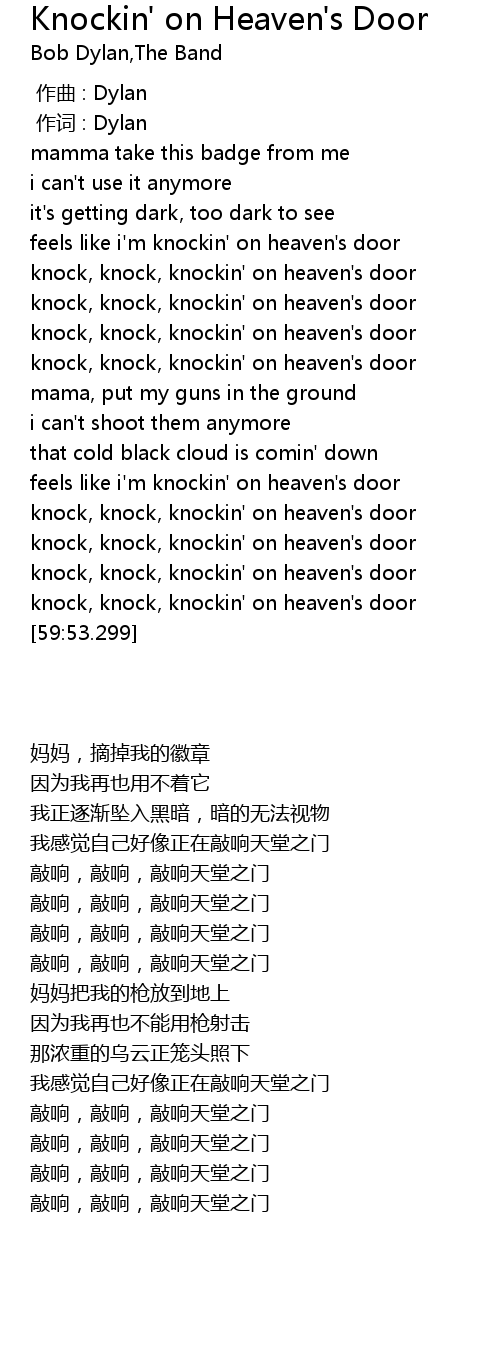 | [00:55.700] | knock, knock, knockin' on heaven's door |