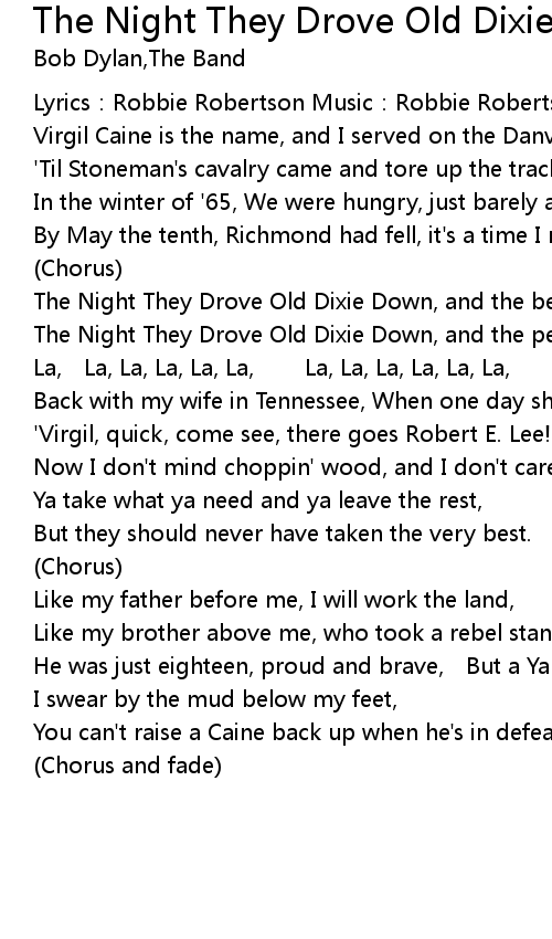 | The Night They Drove Old Dixie Down, and the people were singin'. They went | |