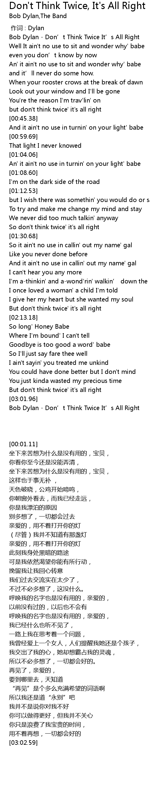 | [03:02.59] | Bob Dylan Don' t Think Twice It' s All Right |