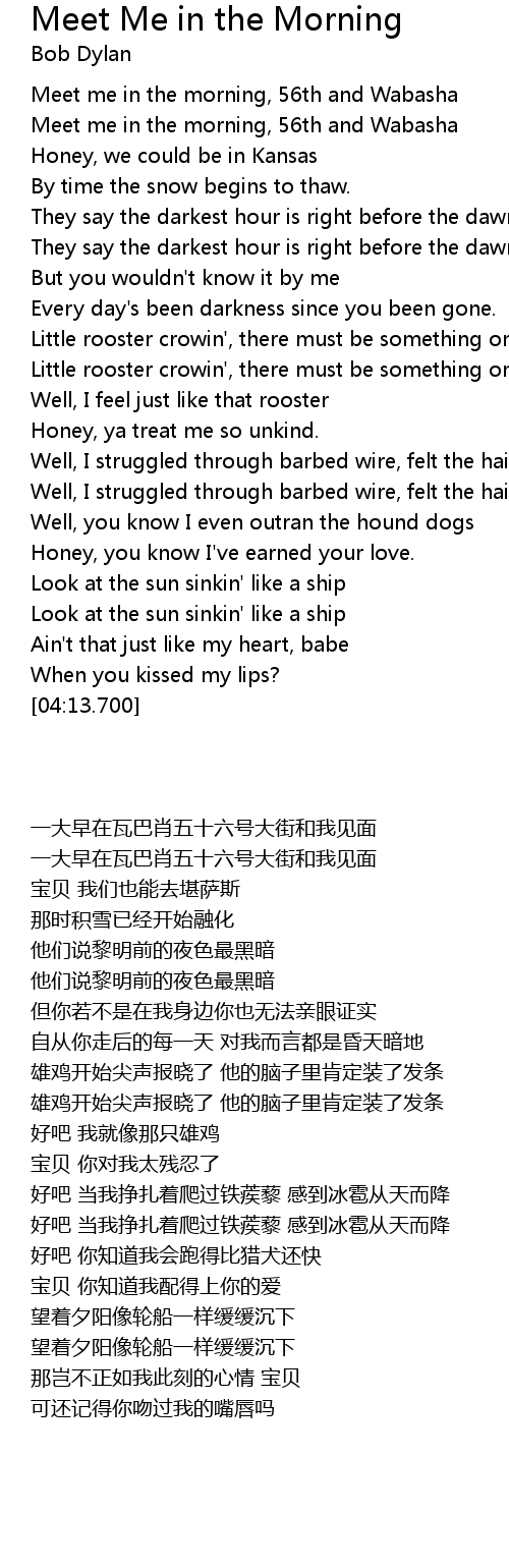| [00:18.900] | Meet me in the morning, 56th and Wabasha |