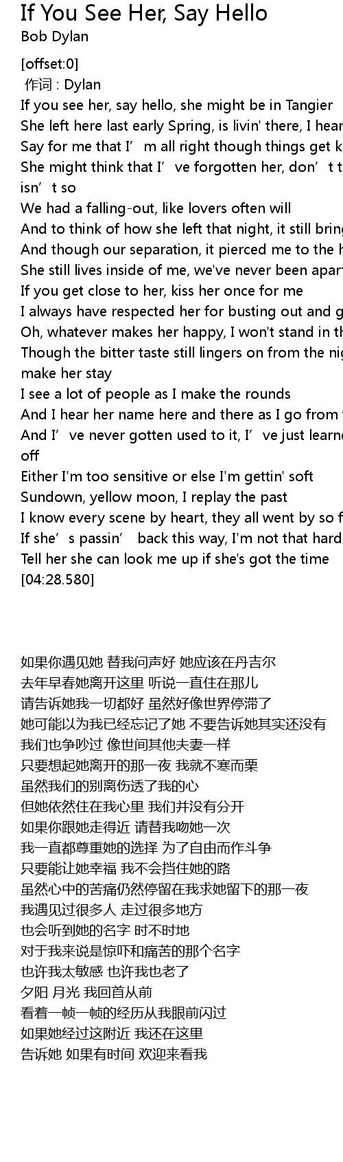 | [00:38.850] | If you see her, say hello, she might be in Tangier |