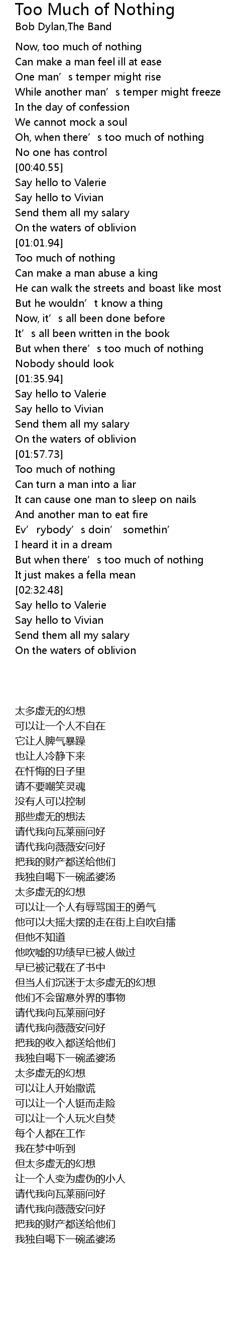 | [00:35.01] | Oh, when there' s too much of nothing |