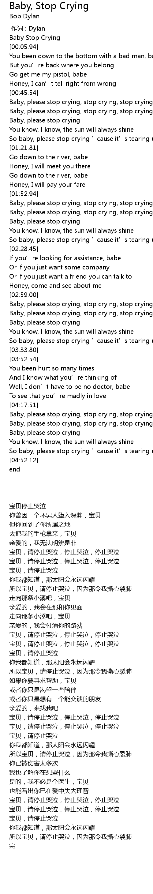 | [01:56.58] | Baby, please stop crying, stop crying, stop crying |
