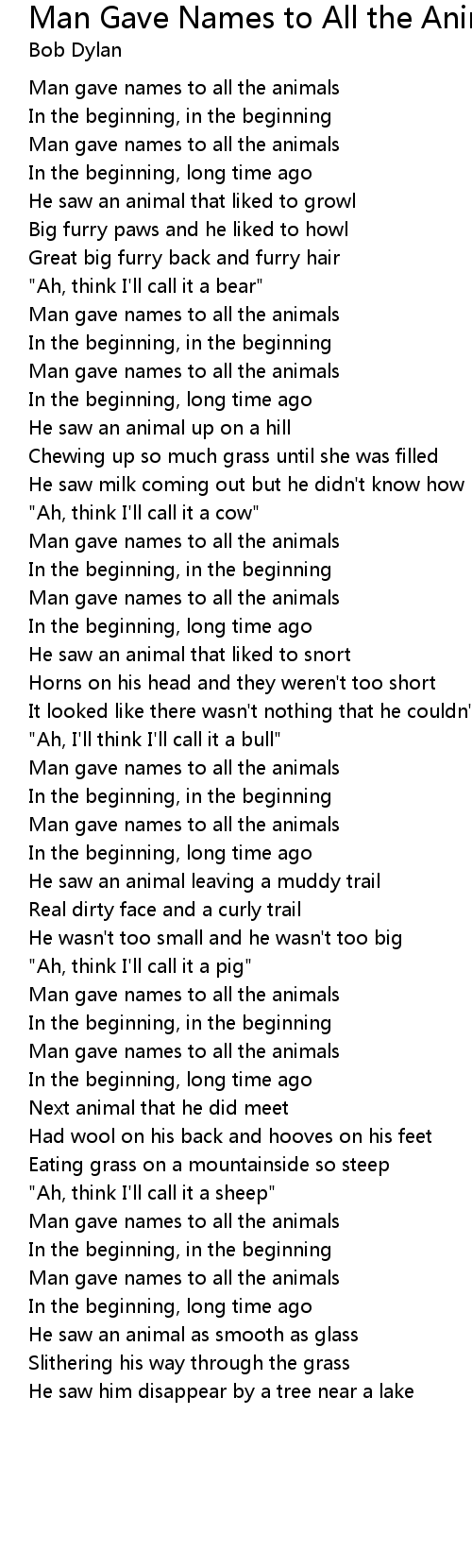Man Gave Names to All the Animals Lyrics
