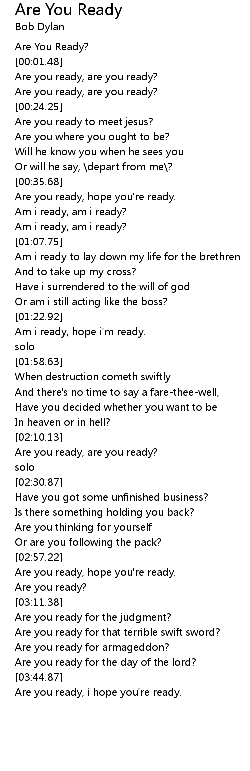 | [00:00.95] | Are You Ready? |