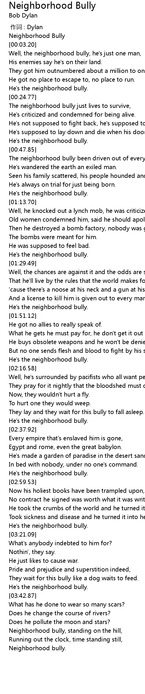 | [00:01.21] | Neighborhood Bully |