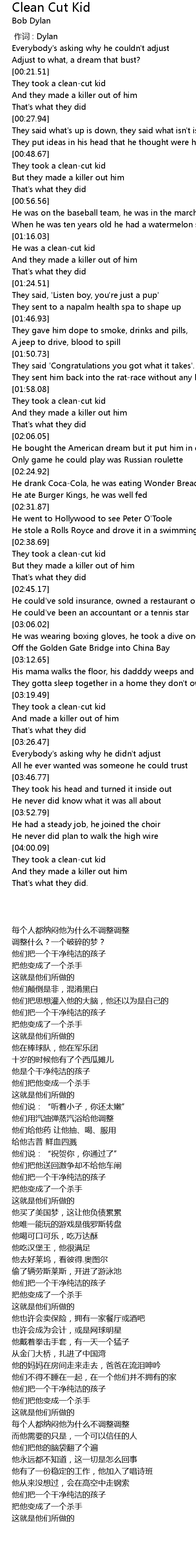 | [00:22.42] | They took a clean-cut kid |