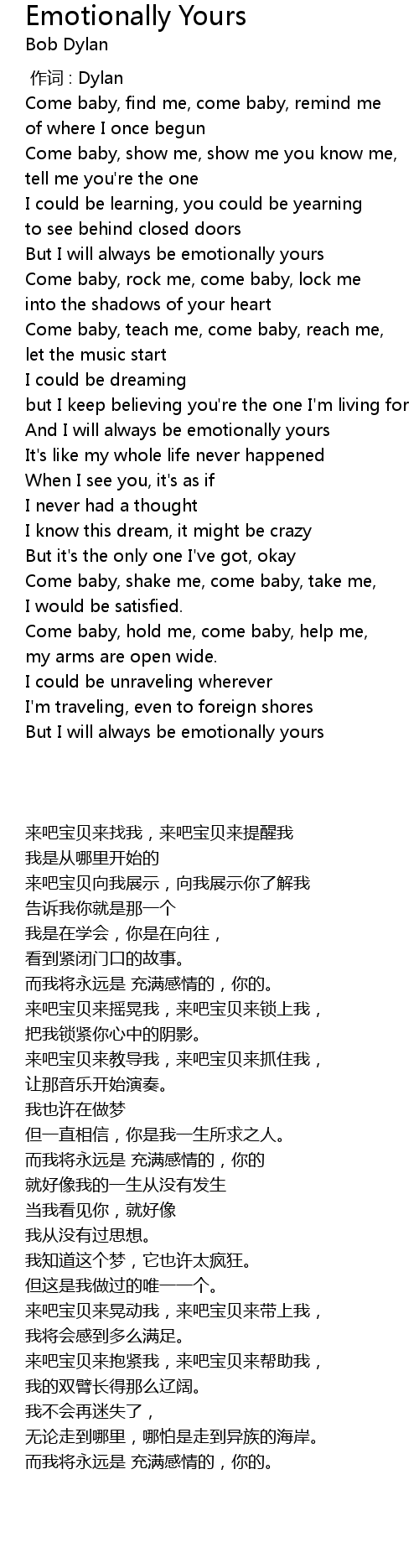| [01:08.48] | But I will always be emotionally yours |