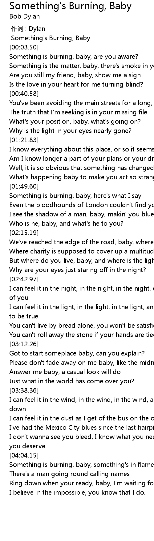 | [04:05.66] | Something is burning, baby, something' s in flames |
